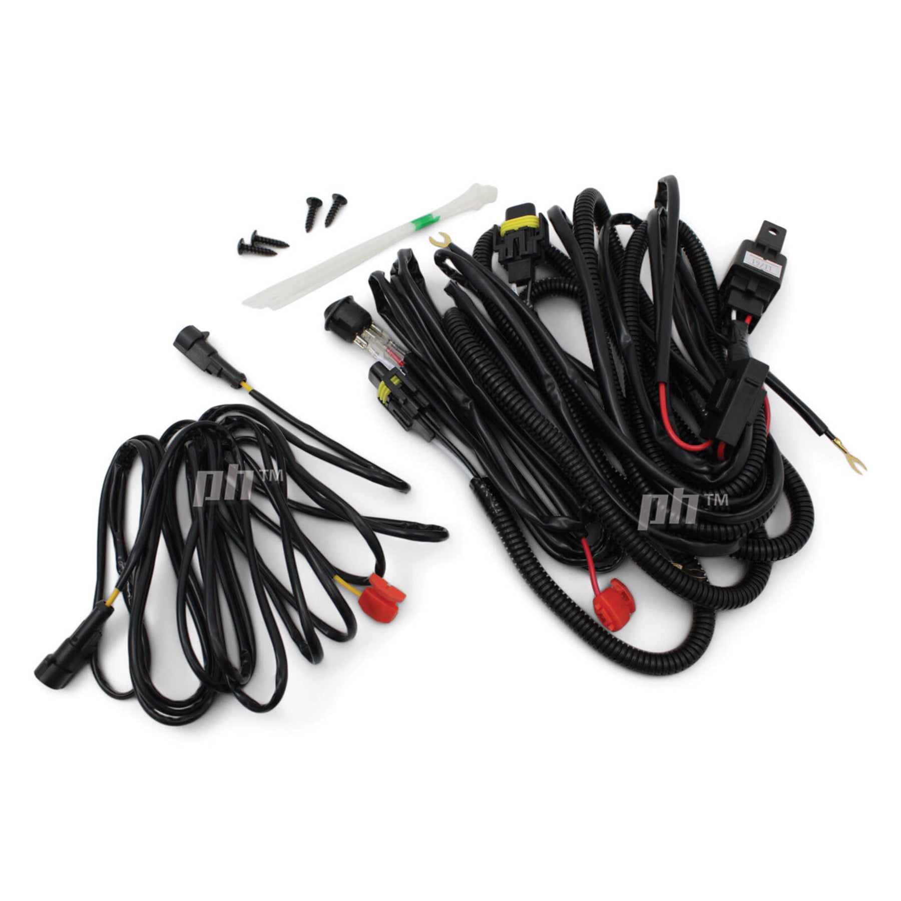 Universal wiring harness with fuse, relay, switch & zip ties
