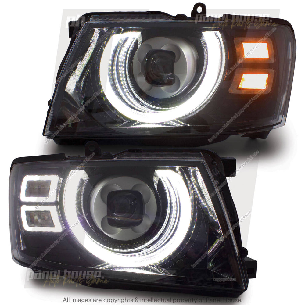 DEFEND-R DRL Full LED Black Projector Headlights PAIR fits Nissan Patrol GU 2004- 2016